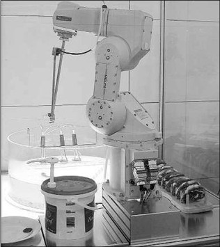 Kreativität bewies das Trio nun mit einem „Weißwurstroboter“ auf der Automatica 2008, der Leitmesse für Automation und Robotik. Dieser Roboter richtet ein Weißwurstfrühstück an und demonstriert dabei technische Höchstleistung. Mechanisch wird erst Senf auf einen Teller gespritzt. Dann scannt eine bildverarbeitende Kamera einen Behälter mit frei schwimmenden Weißwürsten und gibt dem Roboter die Koordinaten der Würste weiter.